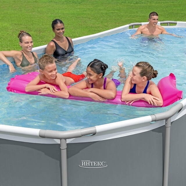 Каркасный бассейн BestWay 56710 Power Steel овальной формы отличается высокой прочностью и устойчивостью. Чаша выполнена из высококачественного трехслойного ПВХ: два слоя плотного винила и один - полиэстер для особой прочности. Каркас металлический, нержавеющий, оцинкованный.