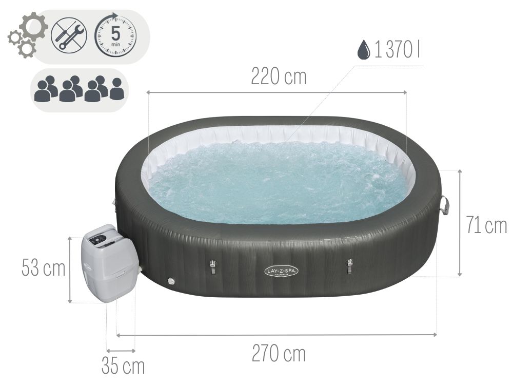 После долгого дня нет ничего более расслабляющего, чем погрузиться в теплую воду на заднем дворе. "Mauritius AirJet" предлагает улучшенный и успокаивающий массаж для 7 человек одновременно. Температура воды в СПА-бассейне может быть повышена до 40 °C, что обеспечивает максимальное расслабление, а благодаря 180 форсункам вы можете насладиться великолепным гидромассажным массажем .Система оснащена 180 воздушными форсунками, которые выпускают пузырьки воздуха на дно СПА-бассейна, создавая приятный теплый пузырьковый массаж. Таким образом, вы можете полностью отключиться от повседневной рутины и расслабиться, не отправляясь в оздоровительный центр. Эта массажная система разработана для максимального комфорта и расслабления.