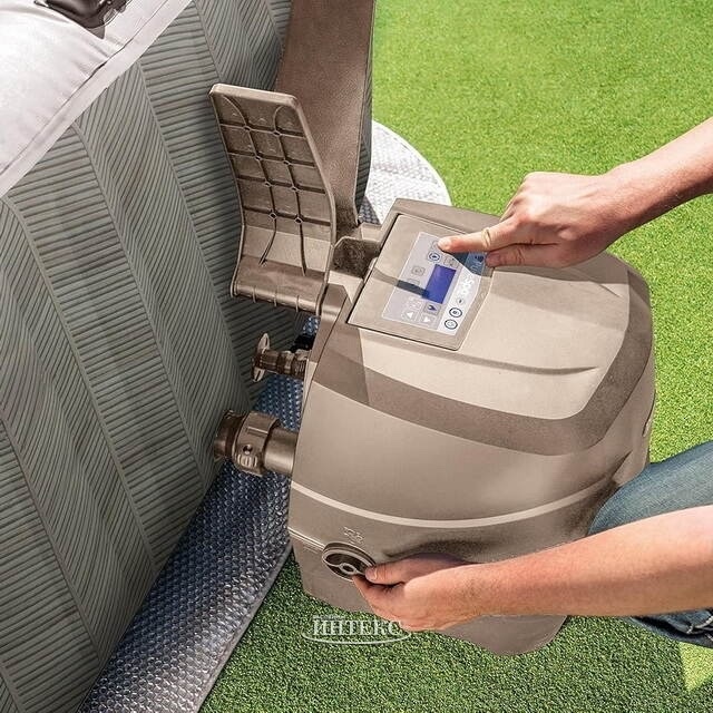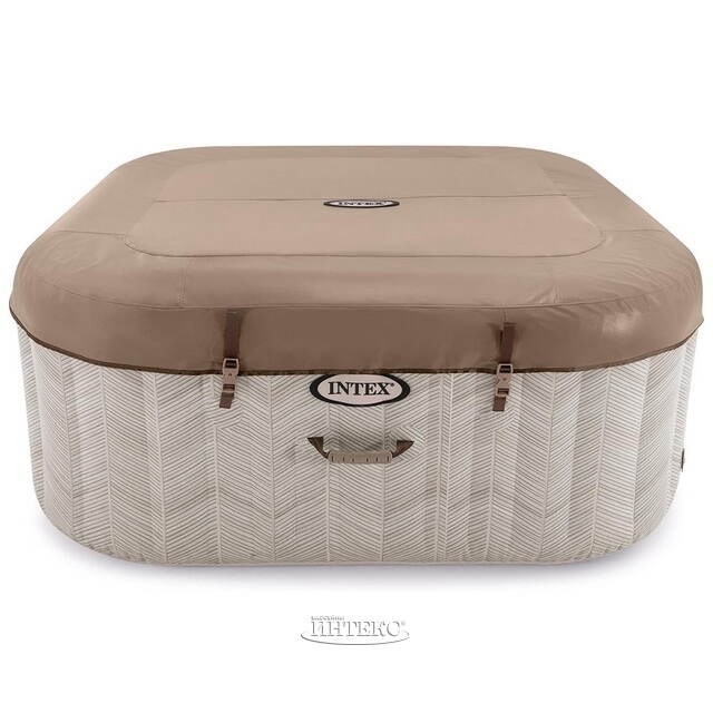 Надувная гидромассажная ванна Intex Chevron Deluxe Square на 4 места, 175 x 175 x 71 см Стильный дизайн, прямо у вас под рукой! Идеально подходит для расслабления в окружении бодрящего пузырькового массажа. Управляйте всеми функциями PureSpa одним нажатием кнопки благодаря перезаряжаемой беспроводной панели, которую можно разместить на краю ванны Изготовлена из высококачественного 3-слойного сверхпрочного ламинированного ПВХ. Внутренняя отделка выполнена из запатентованной технологии FiberTech, тысяч полиэфирных нитей, которые придают PureSpa исключительную прочность: благодаря этой технологии стенки надувной ванны намного более устойчивы и прочны Встроенный подогрев для установки идеальной температуры воды (10°C-40°C), а также система жесткой и соленой воды, которая предотвращает образование известкового налета и облегчает уход за водой. В комплект поставки входят все необходимые аксессуары для полноценного использования: сумка для переноски; основание, на которое можно установить ванну; крышка для предотвращения потери тепла и защиты воды от скопления мусора; два картриджа для фильтрации воды.