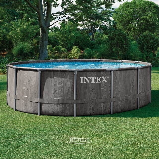 Каркасный бассейн Intex 26742 Prism Frame GreyWood легко и быстро устанавливается c применением минимальных технических средств примерно за 45 минут. Компактный и несложный в эксплуатации, этот вариант идеально подойдет для загородного участка. Благодаря особой технологии печати бассейн имеет реалистичный дизайн "под дерево", потому смотрится люксово и оригинально. Размер круглого каркасного бассейна позволит всей семье или небольшой компании друзей весело провести время на свежем воздухе: просто позагорать, плавая на надувном матрасе, устроить игры с мячом или учить малышей держаться на воде.