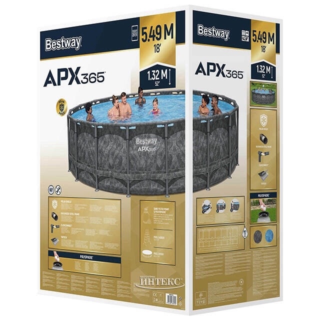 Сборный круглый каркасный бассейн Bestway 561KC BW 549х132см. серии "APX 365" (Bestway) с песочным фильтрующим насосом. Установка круглый год: бассейны APX 365 — первые наземные бассейны на рынке, оснащенные технологией защиты от атмосферных воздействий Polar Shield. Вы можете обустроить бассейны летом для семейного купания и оставить их зимой — нет необходимости хранить их вне сезона! Polar Shield защищает покрытие бассейна от вредных погодных воздействий даже при низких температурах. Прочная конструкция: бассейн изготовлен из коррозионностойкой оцинкованной стали и рассчитан на максимальную долговечность. Каркас изготовлен из 100% оцинкованной стали, что предотвращает появление ржавчины и атмосферных повреждений. Благодаря соединениям ClickConnect бассейн легко настроить — не требуются дополнительные инструменты или аксессуары. Т-образные соединители предотвращают контакт металла с металлом, повышая устойчивость к ржавчине. Прочная облицовка бассейна TriTech изготовлена из прочного трехслойного материала, усиленного для повышения прочности и устойчивости к разрыву. TriTech на 15% более устойчив к разрыву, на 33% более устойчив к растяжению и на 83% более долговечен, чем стандартный ПВХ, поэтому ваш бассейн прослужит много лет.