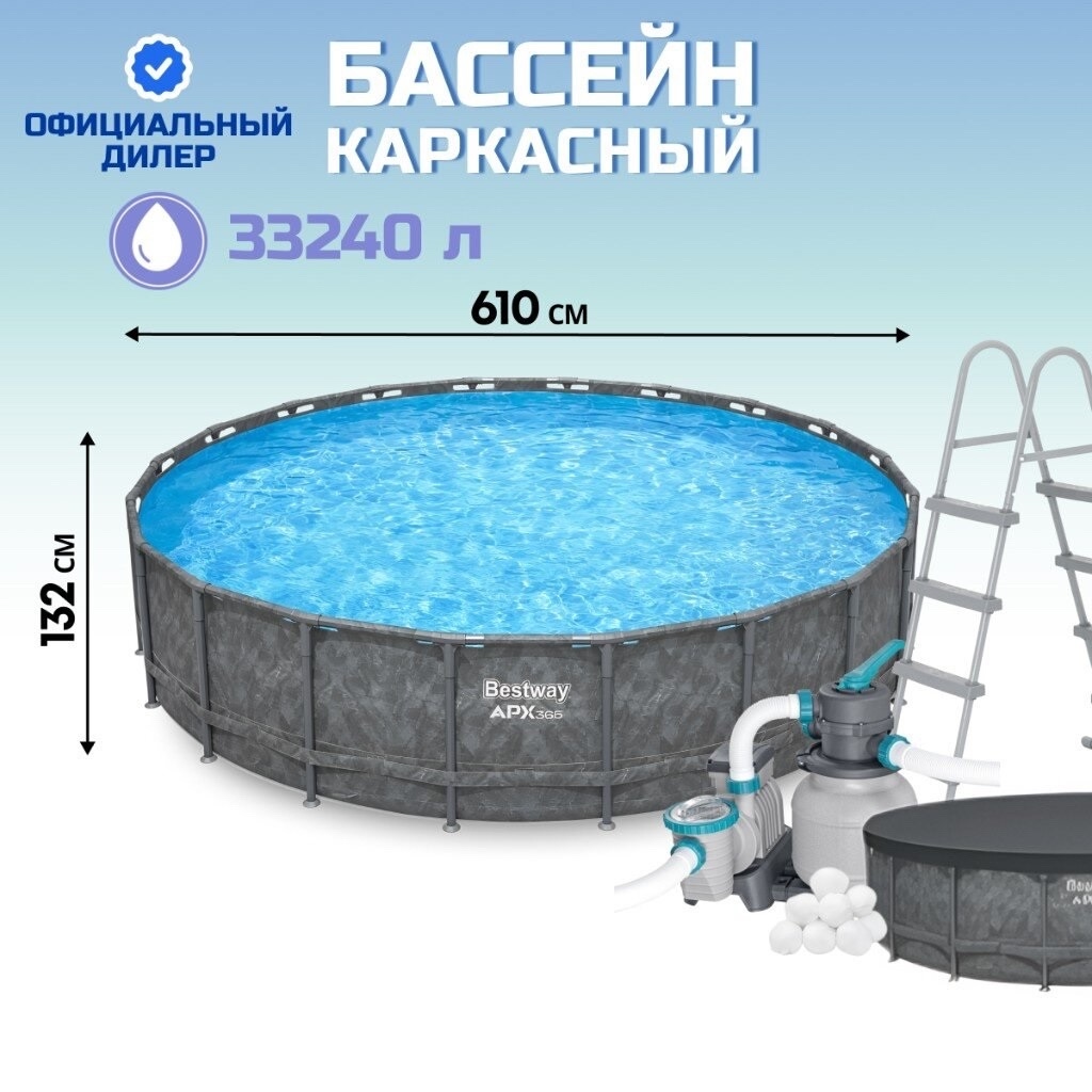 Сборный круглый каркасный бассейн Bestway 561KE BW 610х132см. серии "APX 365" (Bestway) с песочным фильтрующим насосом. Установка круглый год: бассейны APX 365 — первые наземные бассейны на рынке, оснащенные технологией защиты от атмосферных воздействий Polar Shield. Вы можете обустроить бассейны летом для семейного купания и оставить их зимой — нет необходимости хранить их вне сезона! Polar Shield защищает покрытие бассейна от вредных погодных воздействий даже при низких температурах. Прочная конструкция: бассейн изготовлен из коррозионностойкой оцинкованной стали и рассчитан на максимальную долговечность. Каркас изготовлен из 100% оцинкованной стали, что предотвращает появление ржавчины и атмосферных повреждений. Благодаря соединениям ClickConnect бассейн легко настроить — не требуются дополнительные инструменты или аксессуары. Т-образные соединители предотвращают контакт металла с металлом, повышая устойчивость к ржавчине. Прочная облицовка бассейна TriTech изготовлена из прочного трехслойного материала, усиленного для повышения прочности и устойчивости к разрыву. TriTech на 15% более устойчив к разрыву, на 33% более устойчив к растяжению и на 83% более долговечен, чем стандартный ПВХ, поэтому ваш бассейн прослужит много лет.