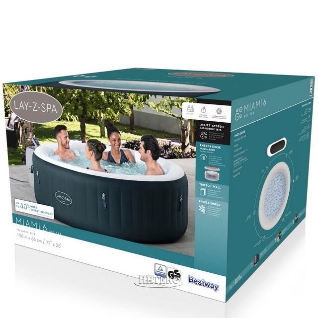 надувной СПА бассейн Lay-Z-Spa Miami EnergySense с контрольным блоком, включающим фильтрующий насос и нагреватель воды;